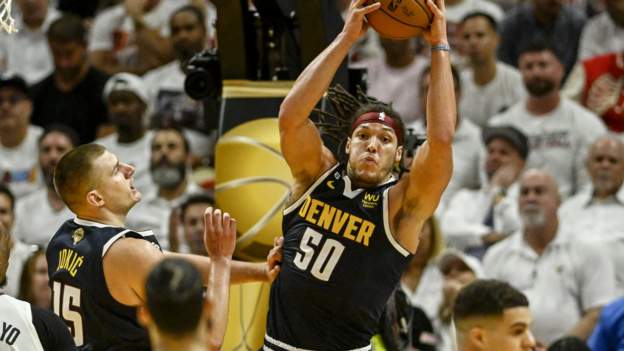 The Denver Nuggets move to within one win of their first NBA title with a 13-point victory over the Miami Heat.